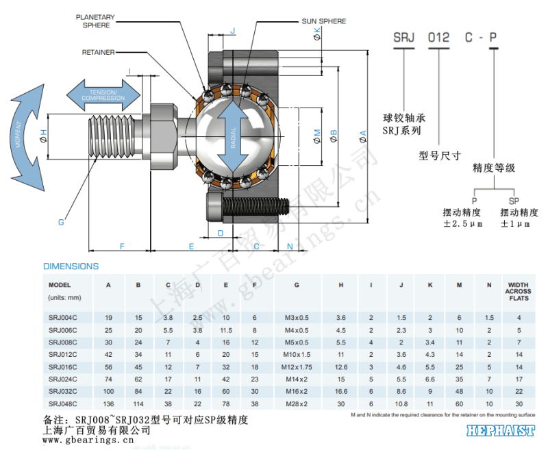 SRJ004CP 日本HEPHAIST球鉸軸承 用于自由度平臺