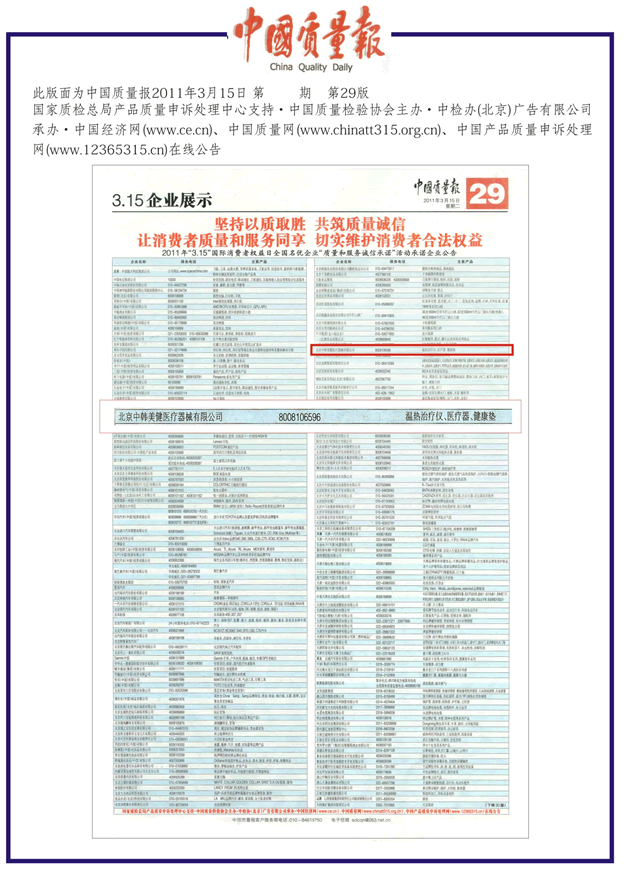 讓消費者質(zhì)量和服務(wù)同享,切實維護(hù)消費者的合法權(quán)益,提供權(quán)威可靠的質(zhì)量信息,共創(chuàng)放心的消費環(huán)境。美健通過了多方的官方考查,被認(rèn)定為醫(yī)療器械行業(yè)當(dāng)中最高質(zhì)量的產(chǎn)品且滿足顧客服務(wù)需求。