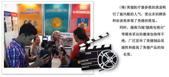 2012年4月4日到7日,(株)美健醫(yī)療器在越南河內(nèi)參加了Vietnam Exhibition & Fair 展覽中心舉辦的世界一流韓國(guó)產(chǎn)品展覽會(huì)。
