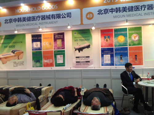 我們美健公司在這次展會(huì)中展示了 “美健溫?zé)嶂委熎骱偷诎舜贇q石墊子” 顧客紛紛詢問并嘗試機(jī)器的效果,無不稱贊產(chǎn)品性能好,體驗(yàn)效果好。顧客體驗(yàn)的隊(duì)伍排起了長龍。同時(shí),也有很多預(yù)約好的商家咨詢、洽談如何運(yùn)作我們的產(chǎn)品,如何取得我們產(chǎn)品的經(jīng)營權(quán), 我公司銷售人員詳 細(xì)的做了解說,也為我們開拓西北市場打好了鋪墊,做好了準(zhǔn)備。